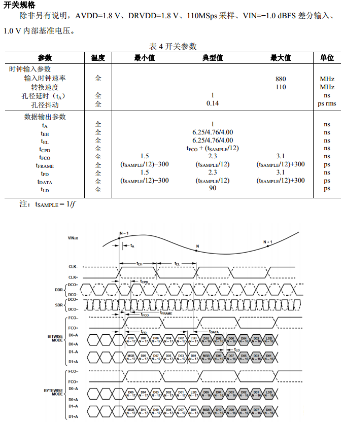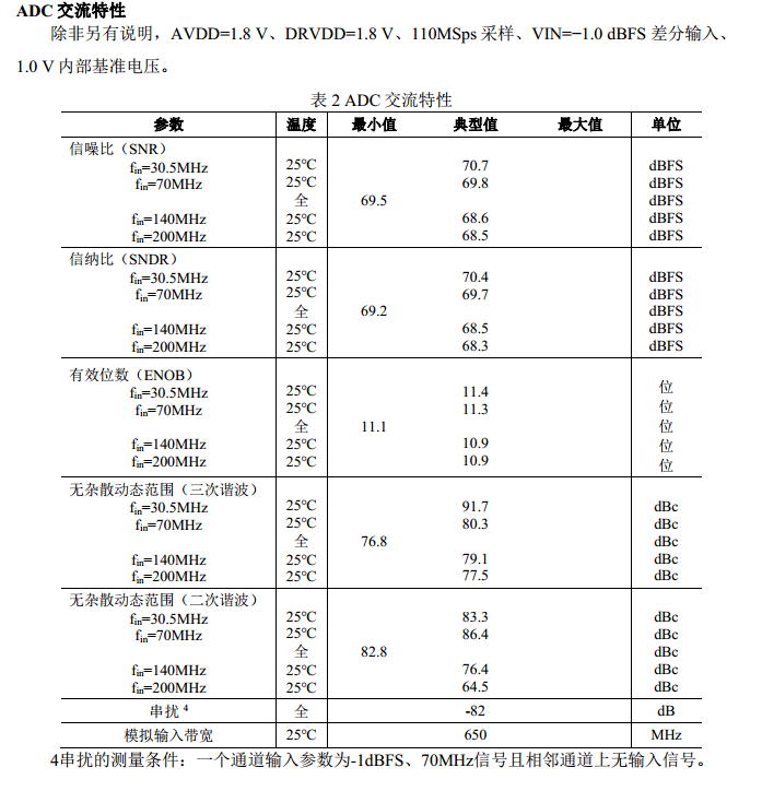 ? 低功耗:每通道 110mW(110MSps)