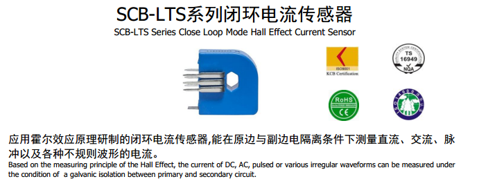 SCB-LTS系列閉環電流傳感器,應用霍爾效應原理研制的閉環電流傳感器,能在原邊與副邊電隔離條件下測量直流、交流、脈沖以及各種不規則波形的電流。