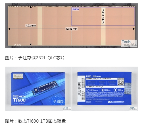 據介紹,TechInsights 在2023年7月推出的致態固態硬盤(SSD)中發現由長江存儲制造的232層QLC 3D NAND芯片。這種新的QLC芯片具有19.8 Gb/mm2的商用NAND產品中最高的比特密度。