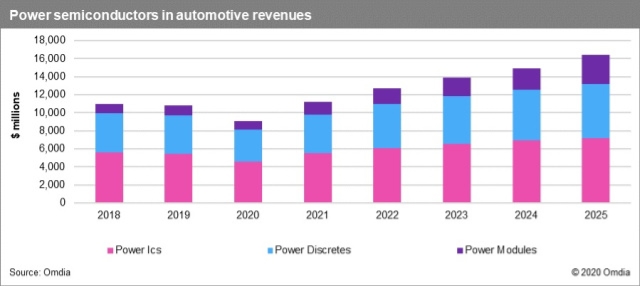 Omdia表示,如果今年下半年汽車銷售反彈(這是一個很大的問號),power半導體銷售可能反彈,基于被壓抑的需求,增長可能超過20%。恢復在很大程度上取決于避免第二波Covid-19感染和疫苗研制取得進展。