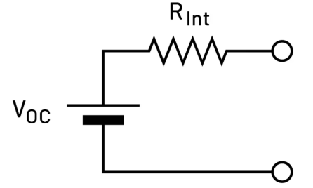圖 2. DCIR 電池模型包括一個理想的電壓源和一個內部電阻器。