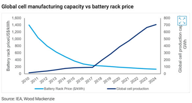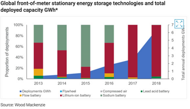 儲能技術分析師Rory McCarthy在Woodmac網站發表文章,認為不同儲能技術的競賽已經產生了一個明顯的勝利者:鋰離子電池。2018年鋰離子占全球固定式儲能技術市場的95%,它將在未來10年內主導這一格局。與其他存儲技術相比,鋰離子具有顯著優勢:規模經濟。自30多年前第一款商用鋰離子電池投放市場以來,它已被消費電子行業廣泛用于從手表到智能手機的所有領域。隨著對電動汽車需求的增加,汽車行業也支持鋰離子作為其存儲的首選。自2010年以來,用于存儲系統的鋰離子電池架的成本下降了85%。同期的制造能力已從14GWh擴大至285GWh,并有望在2026年之前翻一番以上,達到777GWh。預計到2026年鋰離子電池價格每年將繼續平均下降9%。