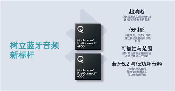 FastConnect 6900/6700方案都集成了最新的藍牙5.2音頻技術,關鍵特性包括: