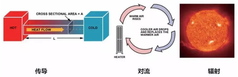 圖1:熱傳遞的三種機制。