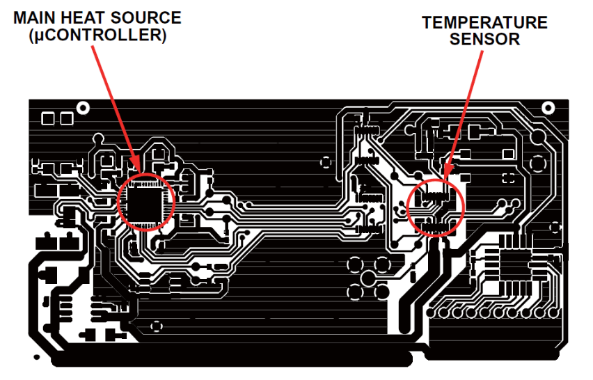 很多時候我們并不需要測量PCB的溫度的,他們只想測量環境溫度。與上面的測量關鍵熱源的溫度不同,我們需要做到防止PCB上的熱源影響溫度傳感器對環境溫度的測量。