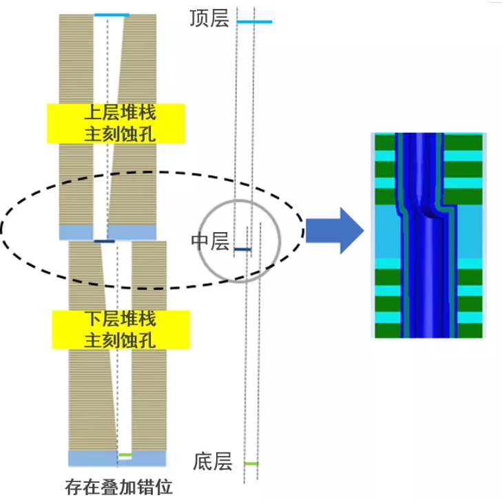工藝的復雜性在2D向3D閃存結構的過渡中急劇提升,原因在于3D結構需要多層溝道的刻蝕。當今的大多數3D NAND存儲器都有兩層,這就意味著可能出現頂層與底層錯位問題。