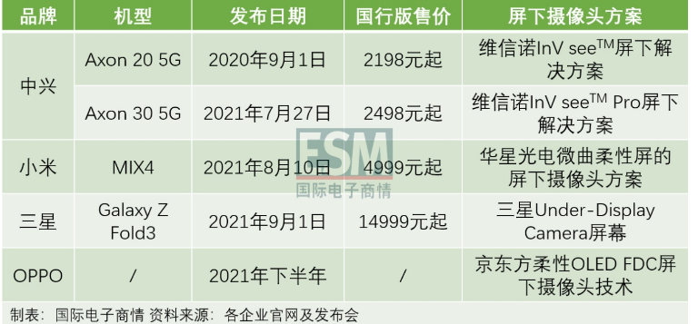 如果說2020年是屏下攝像頭技術商用的元年,那么2021年則是該技術開始爆發的年份。2021年下半年,中興推出了新一代Axon 30 5G,小米、三星分別推出了MIX4、Galaxy Z Fold 3,OPPO、vivo屏下攝像頭手機也將在年內推出,多款新品的發布似乎預示著該技術進入了產業爆發階段。