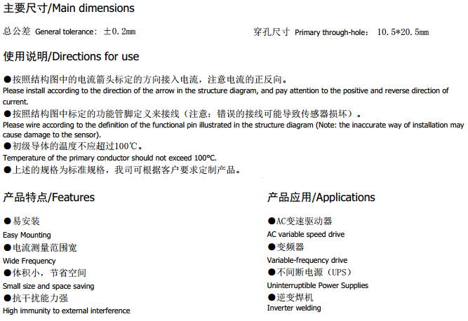 應用霍爾效應原理開發的開環電流傳感器,能在原邊、副邊電隔離條件下測量直流、交流、脈沖