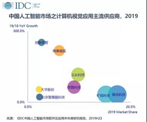 報告顯示,2019 年全年中國計算機視覺應用市場達 1456.4 百萬美元,市場增長來源于安防、城市大腦等領域,人臉識別的應用空間也已呈現出較高的滲透。商湯、曠視、云從以及依圖仍主導市場。m.xx99av.com