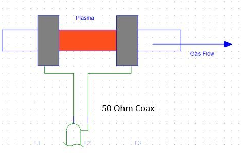 在此狀態下,RF功率如何傳輸?我們于是將兩個電極直接連接到同軸電纜(Coax),該同軸電纜再端接至調諧的RF產生器。