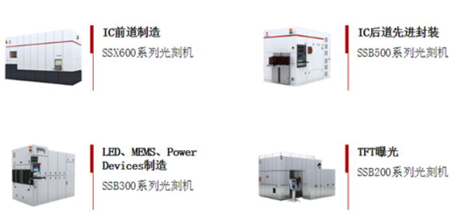上海微電子現(xiàn)有4大系列的光刻機(jī)產(chǎn)品,其中600系列步進(jìn)掃描投影光刻機(jī)面向IC前道制造,采用四倍縮小倍率的投影物鏡、工藝自適應(yīng)調(diào)焦調(diào)平技術(shù),以及高速高精的自減振六自由度工件臺掩模臺技術(shù),可用于90nm、110nm、280nm工藝和200mm、300mm晶圓生產(chǎn)。500系列面向IC后道先進(jìn)封裝,300系列面向LED、MEMS、功率器件制造,200系列面向TFT曝光。