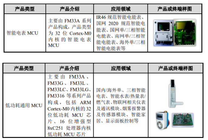公司的智能電表芯片產(chǎn)品主要包括:智能電表MCU、低功耗通用MCU等,智能電表MCU是電子式電能表智能電表的核心元器件,可實(shí)現(xiàn)工業(yè)和家庭用電戶的用電信息計(jì)量、自動(dòng)抄讀、信息傳輸?shù)裙δ埽坏凸耐ㄓ肕CU產(chǎn)品可應(yīng)用于智能電表、智能水氣熱表、智能家居、物聯(lián)網(wǎng)等眾多領(lǐng)域。