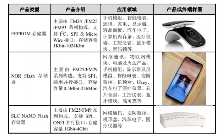 從產(chǎn)品角度講,復(fù)旦微電在安全與識(shí)別芯片、非揮發(fā)存儲(chǔ)器、智能電表芯片、FPGA芯片等領(lǐng)域已具備較好的技術(shù)儲(chǔ)備和較強(qiáng)的研發(fā)優(yōu)勢(shì),自主研發(fā)的單相智能電表MCU芯片產(chǎn)品、EEPROM產(chǎn)品、智能卡芯片等多種產(chǎn)品均處于行業(yè)先進(jìn)水平。具體在招股書信息顯示: