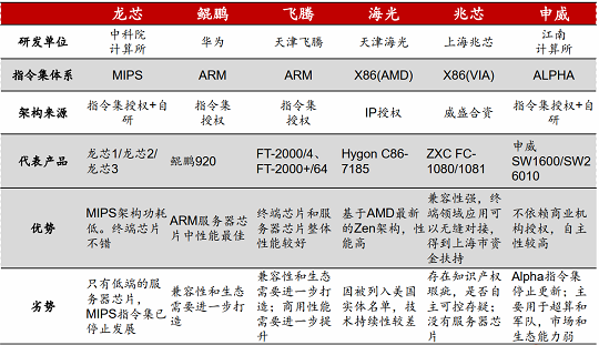 目前我國國產(chǎn)處理器芯片的主要參與者有:龍芯、兆芯、飛騰 、海光、申威和華為等。
