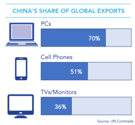 長期以來,中國一直是美國商用半導體的重要市場,占美國芯片銷售總額的三分之一以上。這是因為中國電子組裝大國,成品芯片都要在中國組裝成電路板,然后再將其嵌入到電視機、智能手機和筆記本電腦等電子產品中。