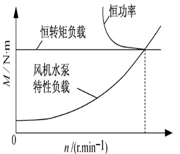 電動機(jī)的負(fù)載分三種。一種是恒功率負(fù)載,一種是恒轉(zhuǎn)矩負(fù)載,還有一種就是風(fēng)機(jī)、水泵類負(fù)載。這后一種負(fù)載的機(jī)械特性是轉(zhuǎn)矩與轉(zhuǎn)速的2次方成正比,功率與轉(zhuǎn)速的3次方成正比(見圖1)。也就是說,在額定電壓、額定頻率情況下只要能夠降低負(fù)載的轉(zhuǎn)速,即是多付出了一些電機(jī)損耗的代價(jià),也有可能獲得系統(tǒng)的節(jié)能效果。