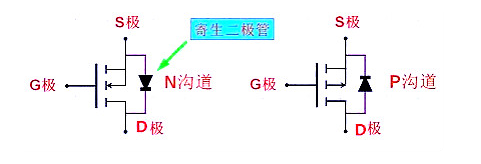 漏極和源極之間有一個寄生二極管,即“體二極管”,在驅動感性負載(如馬達、繼電器)應用中,主要用于保護回路。不過體二極管只在單個MOS管中存在,在集成電路芯片內部通常是沒有的。