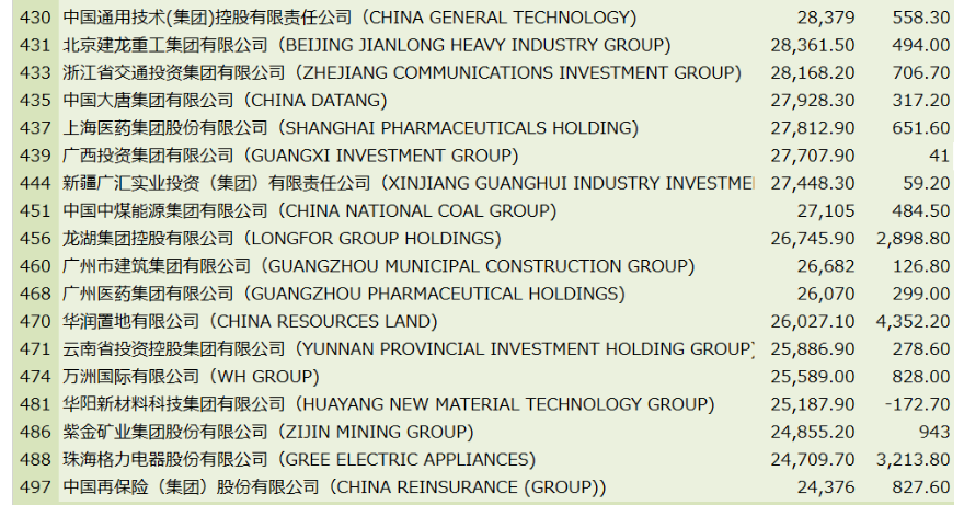 今年《財富》世界500強排行榜一共有45家新上榜和重新上榜公司,其中新上榜和重新上榜的中國公司有18家,分別是:中國船舶集團、浙江榮盛控股集團、浙江恒逸集團、融創中國控股有限公司、敬業集團、新希望控股集團、新華人壽保險、濰柴動力、北京建龍重工集團、浙江省交通投資集團、龍湖集團、廣州市建筑集團、廣州醫藥集團、華潤置地、云南省投資控股集團、萬洲國際、紫金礦業集團、中國再保險(集團)股份有限公司。