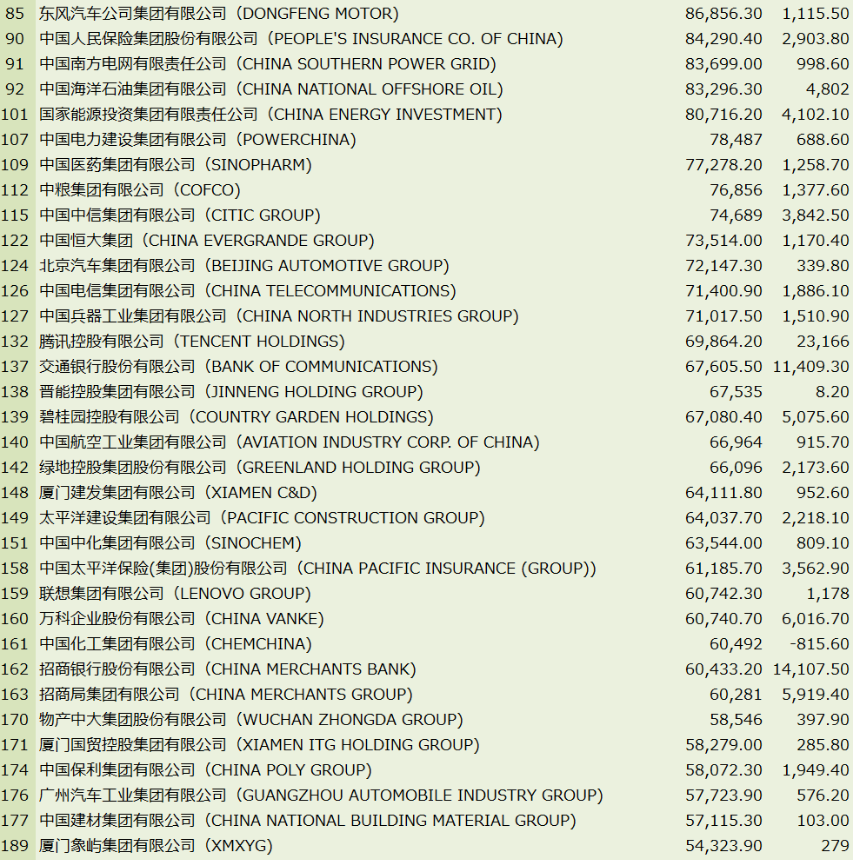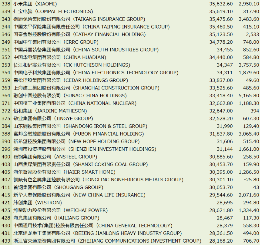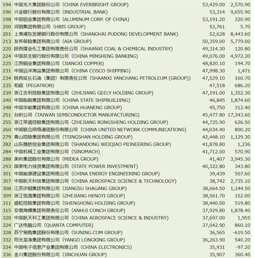 此外,盛虹控股集團、中國核工業集團、江西銅業集團、廈門國貿控股集團、臺積公司和廈門象嶼集團均上升超過百位。