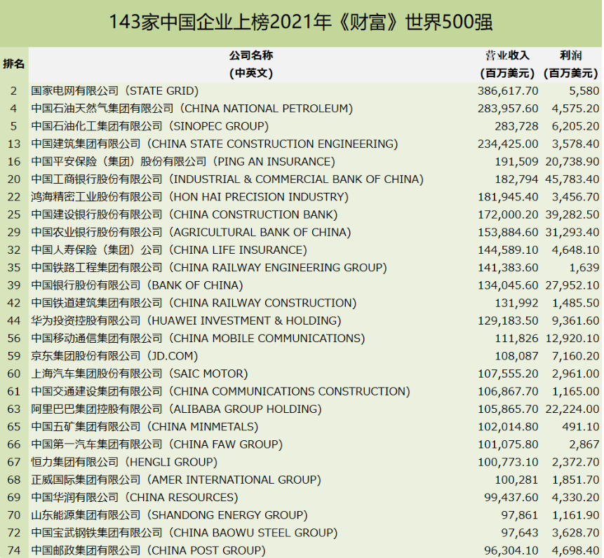 世界500強榜出爐:上榜中企143家,美企僅122家(附完整名單)