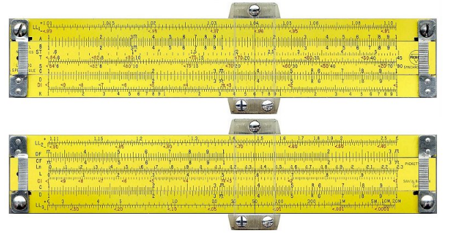 圖2:這種高階的計(jì)算尺——上圖是正面,下圖是背面——需要大量的練習(xí)才能正確使用,而且它提供了兩個(gè)甚至三個(gè)有效數(shù)字的結(jié)果。您需要自行設(shè)定小數(shù)點(diǎn)的位置,但在現(xiàn)代電子計(jì)算器器開發(fā)出來,以及計(jì)算尺過時(shí)被淘汰以前,它協(xié)助科學(xué)家和工程師完成了許多任務(wù)。(圖片來源:International Slide Rule Museum)