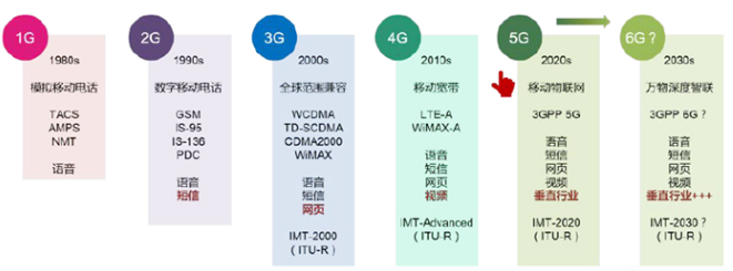 ▲圖1 移動通信的演進歷程(1G~6G)