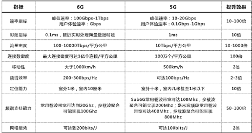 ▲表1 6G與5G關鍵性能指標對比