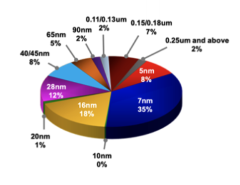 從各工藝制程貢獻的營收占比來看,7nm的占比最高為35%;16nm占比18%與上個季度持平;10nm已經連續兩個季度貢獻為零;16nm以上的成熟制程占比下滑至39%;而最新的5nm工藝首次開始貢獻營收,占比達到了8%,根據現有信息來看,臺積電5nm營收的主要客戶為蘋果和華為。