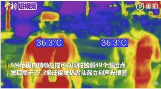 這個(gè)智能頭盔可完成對(duì)前方 5 米范圍內(nèi)所有目標(biāo)人員的掃描,若發(fā)現(xiàn)體溫超過(guò)37. 3 度,頭盔立刻發(fā)出警報(bào)。