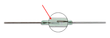 通常由兩個(gè)軟性的磁片制成,并封裝在充有惰性氣體(如氮、氦等)或真空的玻璃管里,玻璃管內(nèi)平行封裝的簧片頂端留有一定間隙或相互接觸以構(gòu)成開關(guān)的常開或常閉觸點(diǎn)。在有無(wú)磁場(chǎng)的環(huán)境中,簧片吸合或斷開的狀態(tài)會(huì)發(fā)生。