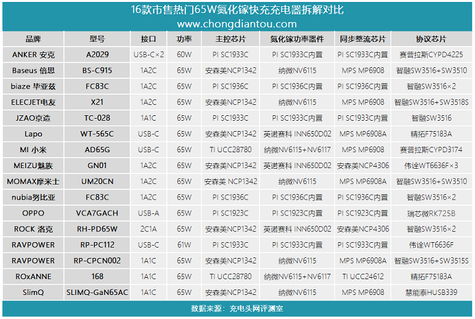 拆解對比16款熱門65W氮化鎵快充,這三家芯片原廠賺翻了