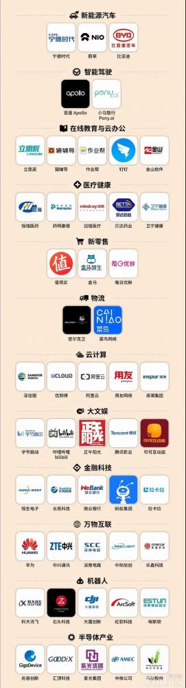 具體來看,在半導(dǎo)體產(chǎn)業(yè)領(lǐng)域,兆易創(chuàng)新、匯頂科技、紫光集團、中微公司、韋爾股份 5 家企業(yè)上榜。在萬物互聯(lián)領(lǐng)域,華為、中興通訊、深南電路、中際旭創(chuàng)、樂鑫科技 5 家企業(yè)上榜。在機器人領(lǐng)域,科大訊飛、石頭科技、大疆創(chuàng)新、虹軟科技等企業(yè)上榜。在云計算領(lǐng)域,阿里云、浪潮集團等企業(yè)上榜。