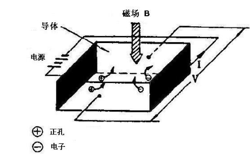在平板半導(dǎo)體介質(zhì)中,電子移動(dòng)(有電場(chǎng))的方向,將因磁力的作用(有磁場(chǎng)) ,而改變電子行進(jìn)的方向。若電場(chǎng)與磁場(chǎng)互相垂直時(shí),其傳導(dǎo)的載子(電子或電洞) ,將集中于平板的上下兩邊,因而形成電位差存在的現(xiàn)象。該電位差即霍爾電壓(霍爾電壓) 在實(shí)際的霍爾組件中,一般使用物質(zhì)中之電流載子為電子的N 型半導(dǎo)體材料。將一定之輸入施加至霍爾組件時(shí)之輸出電壓,利用上述之關(guān)系予以分析時(shí),可以獲致下列的結(jié)論: