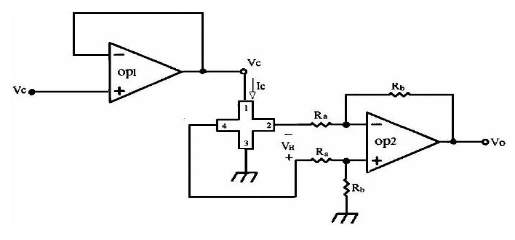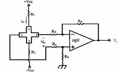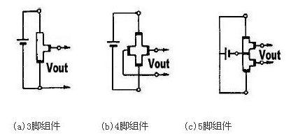 圖2系表示3~5 端子之霍爾組件的使用方法,在三端子霍爾元件之輸出可以產(chǎn)生輸入端子電壓之大致一半與輸出信號(hào)電壓之和的電壓,而在四端子及五端子霍爾組件中,在原理上雖然可以免除輸入端子電壓的影響,但實(shí)際上即使在無(wú)磁場(chǎng)時(shí),也有起因于組件形狀之不平衡等因素之不平衡電壓存在。