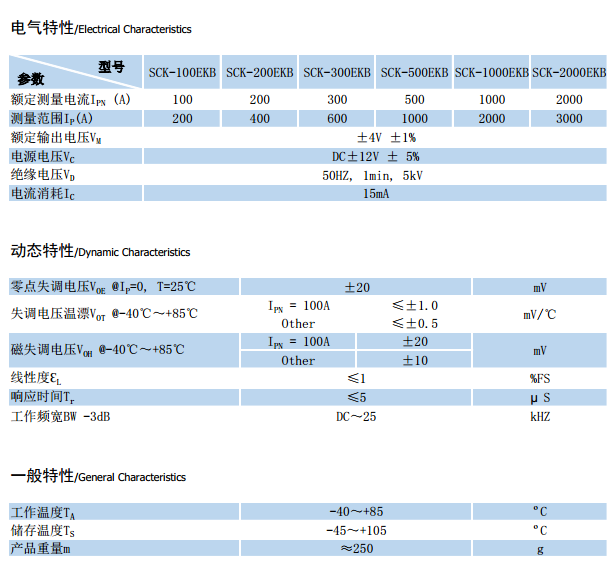 SCK-100EKB開環系列霍爾電流傳感器是國產電流傳感器,應用霍爾效應原理開發的開環電流傳感器,能在原邊、副邊電隔離條件下測量直流、交流、脈