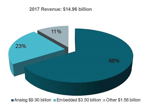 圖1 按產(chǎn)品劃分,TI超過85%的營業(yè)收入來自模擬與嵌入式市場