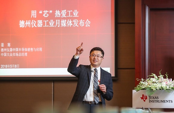 圖3 TI半導(dǎo)體事業(yè)部中國區(qū)大眾市場銷售與應(yīng)用總經(jīng)理姜寒在TI工業(yè)月媒體活動上演講